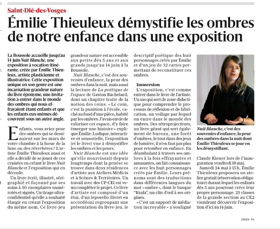 • Article | Projet EAC | Journaliste Julien JACQUEMIN : https://vosgesinfo.fr/saintdieinfo/2024/06/lartiste-emilie-thieuleux-et-les-jeunes-ecoliers-de-clemencet-donnent-vie-a-une-grande-fresque-murale/