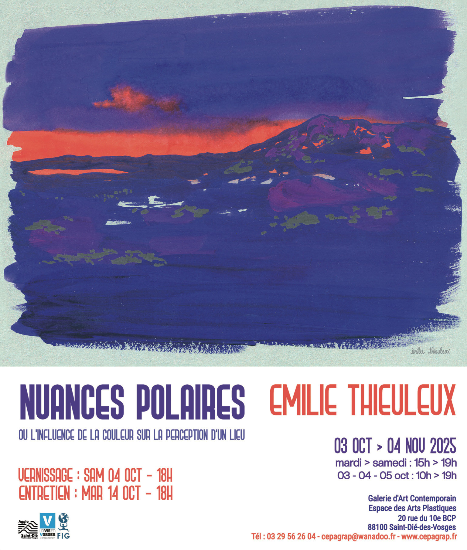 • Article | Exposition Nuances Polaires ou l'influence de la couleur sur la perception d'un lieu Journaliste Nelly BOURG : https://www.vosgesmatin.fr/culture-loisirs/2025/10/09/emilie-thieuleux-expose-son-experience-arctique-au-groenland